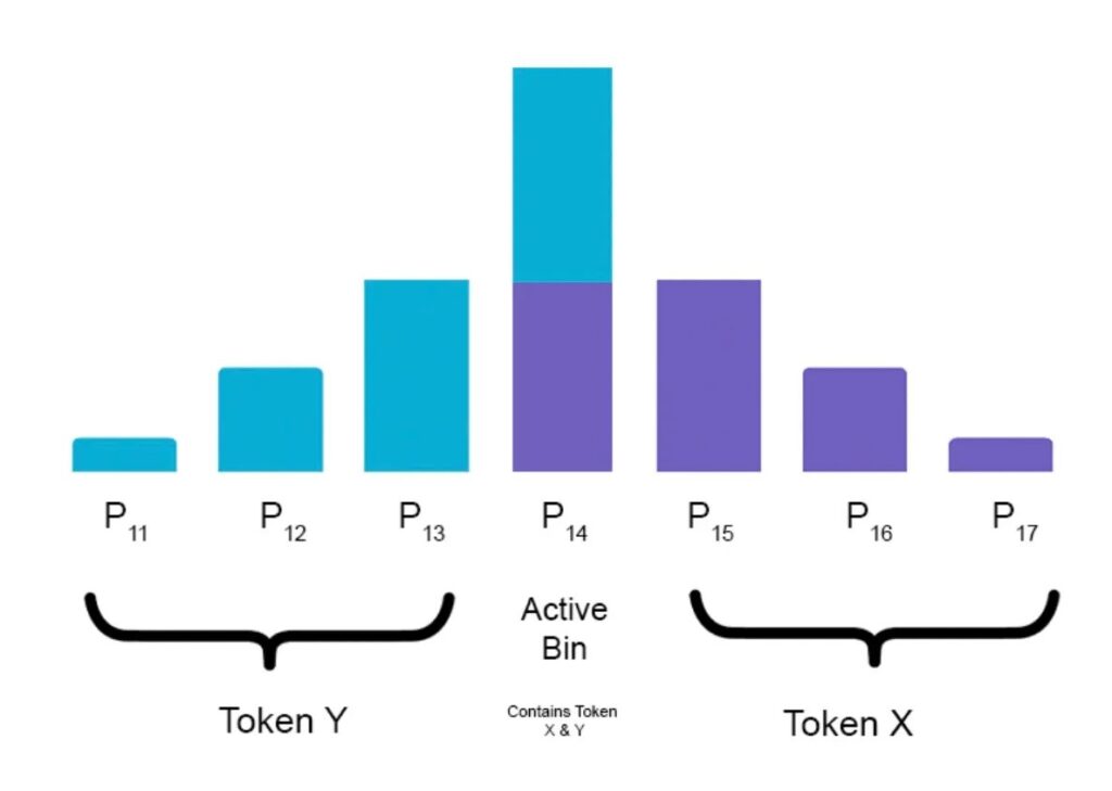 分箱 (Bins) 将价格切割为多个连续区间(例如1.00 – 1.01 SOL,1.01 – 1.02 SOL….每个区间称为一个Bin) 每个Bin内,独立计算流动性,类似微型Uniswap池子,公式 x+y=L, (L是Bin内流动性总量)