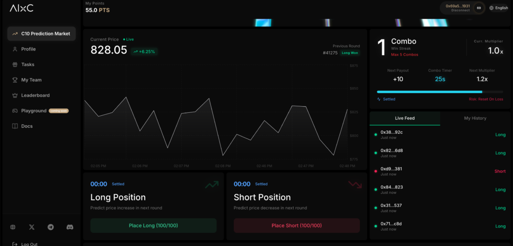 首先我们进入活动的页面,https://hub.aixcrypto.ai/#prediction-market 。活动内容也非常的简单。完成任务板块的任务后,即可获得相应的积分。