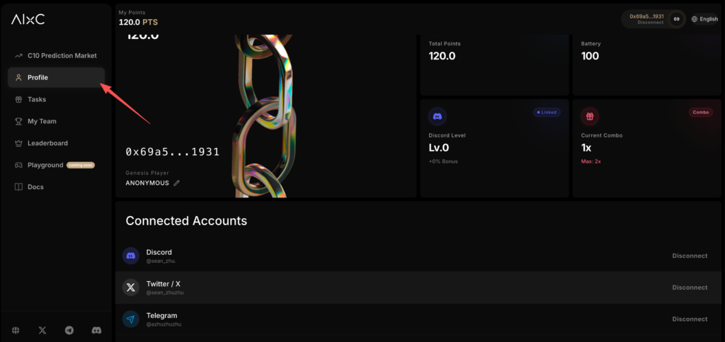 点击下面的profile。完成多个平台 的社媒绑定。即可获取一定的积分