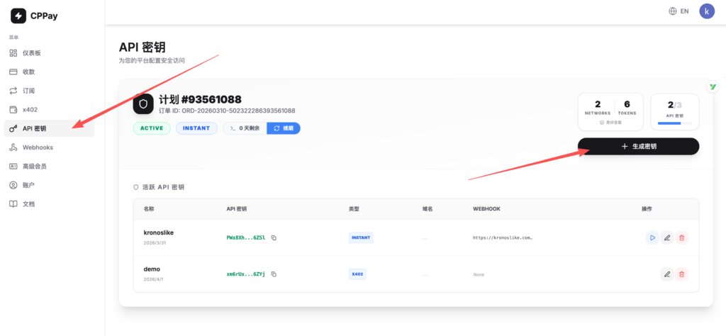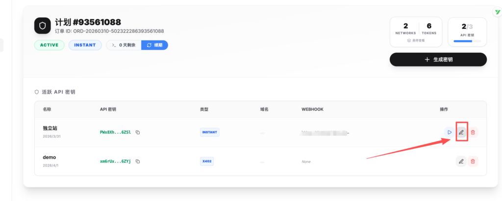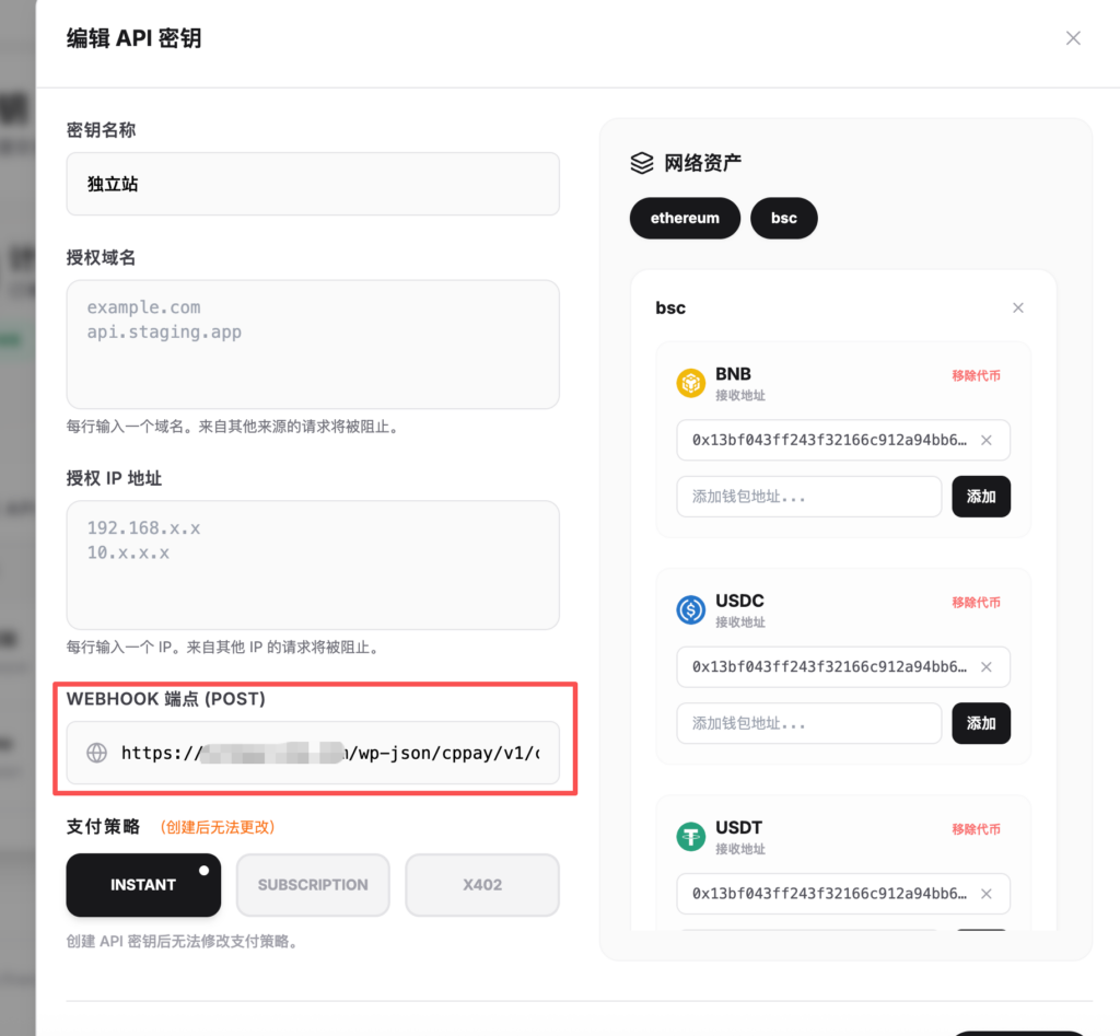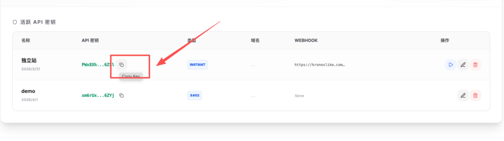 - 回到CPPAY的后台,点击刚才的apikey进行编辑