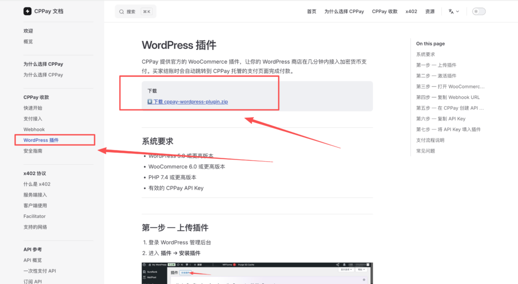 回到 CPPAY官方文档后(cppay.finance/docs/zh/)后,点击快速开始
